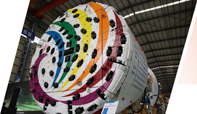 我國自主研制的、在昆明組裝的國內(nèi)最大直徑硬巖掘進(jìn)機(jī)“彩云號”,以白色刀盤為底,用橙、黃、藍(lán)、綠、紫五色繪出一幅孔雀圖案。 |