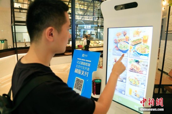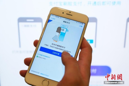 9月19日,刷臉支付需要先在支付寶APP上開(kāi)通該項(xiàng)服務(wù)。近日,支付寶在杭州一家餐廳首次推出刷臉支付服務(wù),用戶開(kāi)通該項(xiàng)功能后只需綁定手機(jī)號(hào),通過(guò)支付平臺(tái)刷臉即可完成交易,再也無(wú)須擔(dān)心付款時(shí)手機(jī)沒(méi)電或者忘帶的尷尬。中新社記者 王遠(yuǎn) 攝