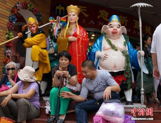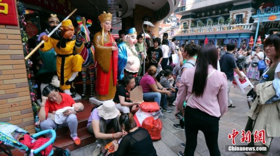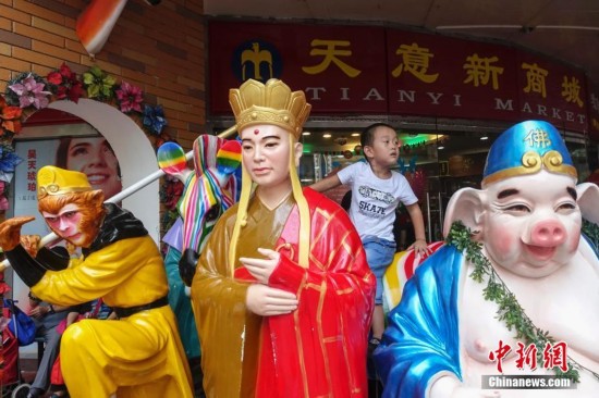 9月15日,一孩童坐在天意門前西游記師徒雕像上遠(yuǎn)眺。當(dāng)日,自1992年開業(yè)至今的北京天意市場(chǎng)迎來其在北京西城阜外大街營(yíng)業(yè)的最后一日,商家趁機(jī)“瘋狂甩貨”,大批北京民眾也紛至沓來。這里曾是北京著名的小商品商城,聚集了數(shù)千家商戶。為疏解北京非首都功能,天意商城將于本月16日關(guān)門停業(yè)。中新社記者 崔楠 攝