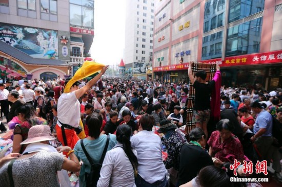 9月15日,幾位來自斯里蘭卡的游客慕名前來天意選購(gòu)商品。當(dāng)日,自1992年開業(yè)至今的北京天意市場(chǎng)迎來其在北京西城阜外大街營(yíng)業(yè)的最后一日,商家趁機(jī)“瘋狂甩貨”,大批北京民眾也紛至沓來。這里曾是北京著名的小商品商城,聚集了數(shù)千家商戶。為疏解北京非首都功能,天意商城將于本月16日關(guān)門停業(yè)。中新社記者 崔楠 攝