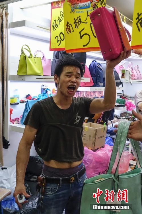 9月15日,一商家舉起商品大聲叫賣。當(dāng)日,自1992年開業(yè)至今的北京天意市場(chǎng)迎來其在北京西城阜外大街營(yíng)業(yè)的最后一日,商家趁機(jī)“瘋狂甩貨”,大批北京民眾也紛至沓來。這里曾是北京著名的小商品商城,聚集了數(shù)千家商戶。為疏解北京非首都功能,天意商城將于本月16日關(guān)門停業(yè)。中新社記者 崔楠 攝