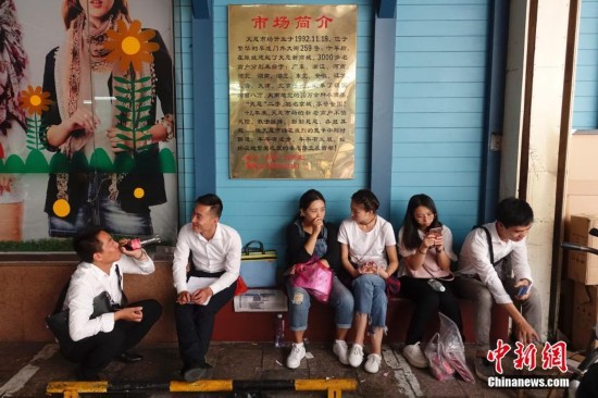 9月15日,幾位年輕人聚集在天意市場(chǎng)簡(jiǎn)介銘牌下休息。當(dāng)日,自1992年開業(yè)至今的北京天意市場(chǎng)迎來其在北京西城阜外大街營(yíng)業(yè)的最后一日,商家趁機(jī)“瘋狂甩貨”,大批北京民眾也紛至沓來。這里曾是北京著名的小商品商城,聚集了數(shù)千家商戶。為疏解北京非首都功能,天意商城將于本月16日關(guān)門停業(yè)。中新社記者 崔楠 攝