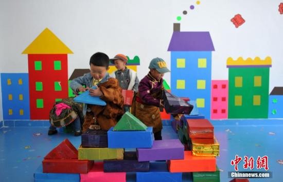 孩子正在教室里堆積木(資料圖)。劉忠俊 攝
