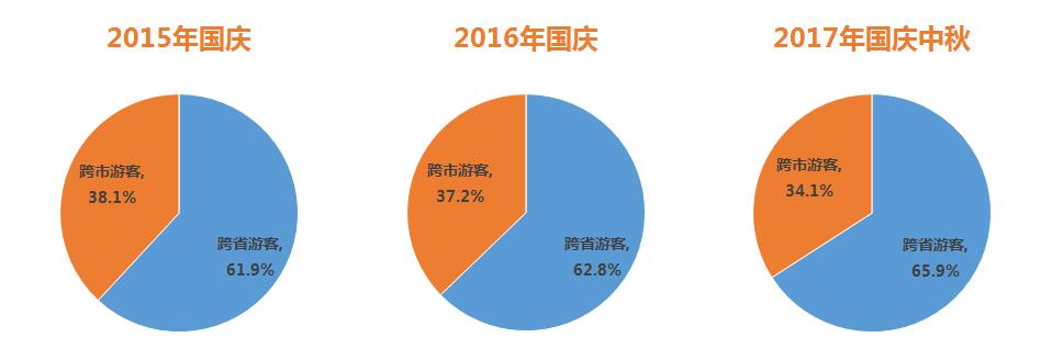 今年國(guó)慶、中秋連休形成八天超級(jí)假期,激發(fā)了居民的中長(zhǎng)線出游熱情,游客中跨省游客人數(shù)較前兩年呈上升趨勢(shì),占比達(dá)近三分之二。