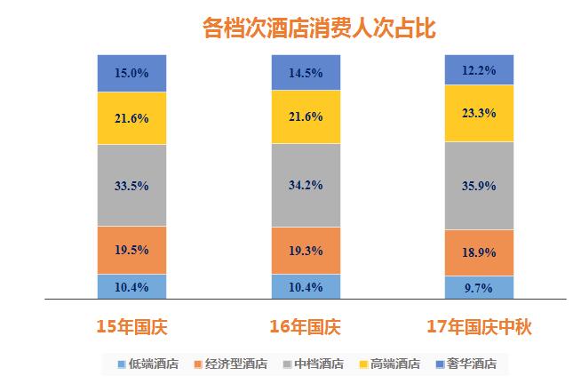 數(shù)據(jù)說(shuō)明:酒店檔次依據(jù)酒店星級(jí)及客單價(jià)綜合考量進(jìn)行劃分。(來(lái)源:銀聯(lián)商務(wù))