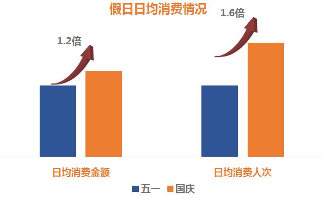 今年國(guó)慶中秋,與五一相比,長(zhǎng)假帶來(lái)的消費(fèi)熱潮更熱烈,日均旅游消費(fèi)金額為五一的1.2倍,日均旅游消費(fèi)人次為五一的1.6倍。