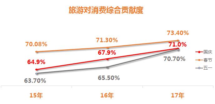 分析銀聯(lián)商務(wù)大數(shù)據(jù),今年國(guó)慶中秋假日旅游對(duì)泛消費(fèi)行業(yè)綜合貢獻(xiàn)度已超過(guò)70%,在三個(gè)重要節(jié)假日中,貢獻(xiàn)度低于春節(jié),高于五一。
