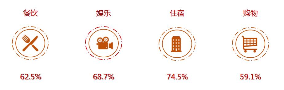 2017年國(guó)慶中秋假日旅游消費(fèi)對(duì)餐飲、娛樂(lè)、住宿、購(gòu)物四個(gè)行業(yè)的貢獻(xiàn)度均在5成以上。作為生活性服務(wù)業(yè)的重要組成部分,旅游消費(fèi)為拉動(dòng)相關(guān)行業(yè)經(jīng)濟(jì)做出了重要貢獻(xiàn)。
