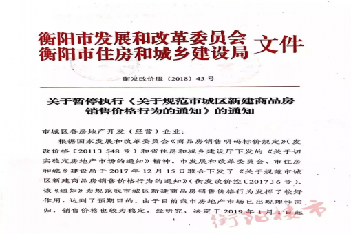 繼山東菏澤頂著壓力解除限售后,湖南衡陽大膽宣布取消限價。 衡陽樓市微信公眾號26日公布衡陽發(fā)改委和住建局聯(lián)合下發(fā)的一份文件,自2019年1月1日起暫停執(zhí)行此前……