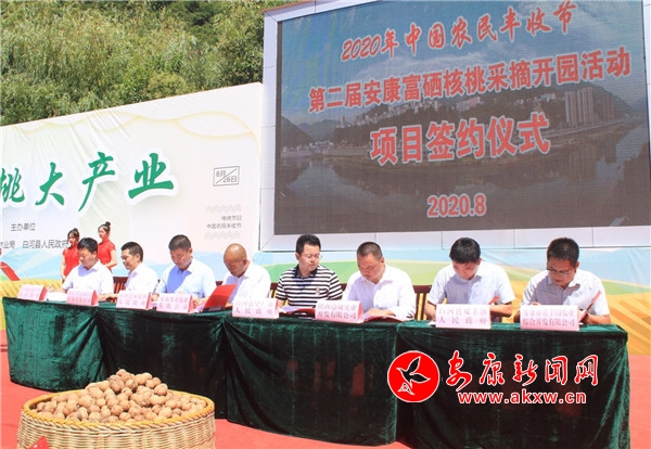 本網(wǎng)訊(記者 吳單 張喬) 8月26日上午,2020中國農(nóng)民豐收節(jié)·第二屆安康富硒核桃采摘開園活動在白河縣冷水鎮(zhèn)三院社區(qū)舉辦。副市長魯琦出席并宣布活動啟動。
