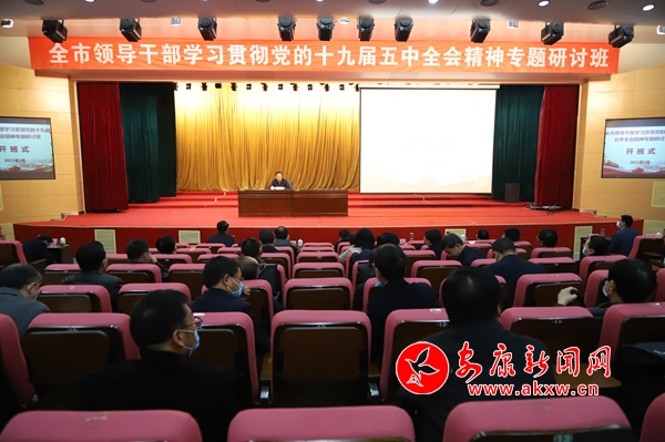 本次專題研討班的主要任務(wù)是深入學習領(lǐng)會黨的十九屆五中全會公報、習近平總書記關(guān)于《中共中央關(guān)于制定國民經(jīng)濟和社會發(fā)展第十四個五年規(guī)劃和二〇三五年遠景目標的建議》的說明,貫通學習習近平總書記兩次來陜考察重要講話精神,以及黨中央和省委相關(guān)重要會議、文件精神,堅持學以致用推動高質(zhì)量發(fā)展,奮力譜寫安康新時代追趕超越新篇章。開班式上,全體學員集中收看了省委書記劉國中在全省市廳級主要領(lǐng)導(dǎo)干部學習貫徹黨的十九屆五中全會精神專題研討班開班式上的輔導(dǎo)講話視頻。
