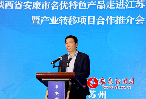 本網(wǎng)訊(記者 艾蓓)3月24日,安康市人民政府聯(lián)合陜西省工信廳、商務(wù)廳、省臺辦主辦的“平安順利·幸福安康—陜西省安康市名優(yōu)特色產(chǎn)品走進(jìn)江蘇(蘇州)暨產(chǎn)業(yè)轉(zhuǎn)移項(xiàng)目合作推介會”在蘇州成功舉辦。市長趙俊民、陜西省工信廳二級巡視員沈長友、蘇州市政府副秘書長陳春明出席會議并致辭,陜西省臺辦二級巡視員多林,市委常委、統(tǒng)戰(zhàn)部部長雷西明,市政協(xié)副主席、市工商聯(lián)主席孟平,安康市開放發(fā)展高級顧問楊堯成等出席會議。副市長寇全安主持會議。