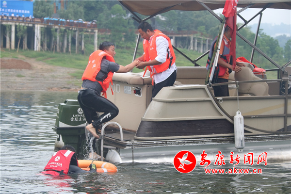 本網(wǎng)訊(記者 羅先安 實(shí)習(xí)記者 劉淵)6月25日,市十四運(yùn)競(jìng)委會(huì)在瀛湖翠屏島南側(cè)公開水域成功舉行十四運(yùn)會(huì)水上項(xiàng)目應(yīng)急救援演練,以進(jìn)一步提高水上安全應(yīng)急救援能力,檢驗(yàn)水上交通應(yīng)對(duì)突發(fā)事件的快速反應(yīng)、應(yīng)急處置和協(xié)調(diào)作戰(zhàn)能力,確保十四運(yùn)會(huì)馬拉松游泳賽事萬(wàn)無(wú)一失。省交通運(yùn)輸廳廳長(zhǎng)、十四運(yùn)會(huì)組委會(huì)交通保障部部長(zhǎng)夏曉中,市委常委、副市長(zhǎng)劉建平現(xiàn)場(chǎng)觀摩了演習(xí)活動(dòng)并分別講話、致辭。