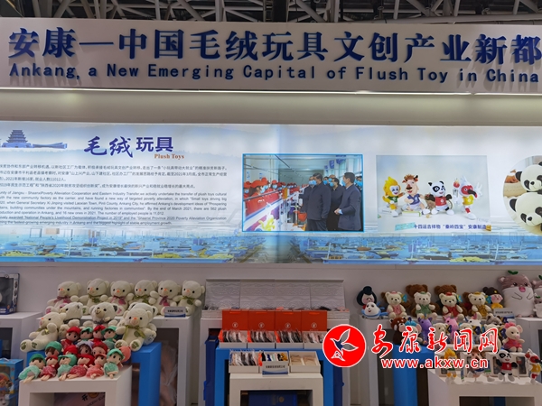 今年五月,第五屆絲綢之路國際博覽會暨中國東西部合作與投資貿(mào)易洽談會在西安舉行。走進安康展館,毛絨玩具搭建的小山格外顯眼,十四運吉祥物“秦嶺四寶”占據(jù)C位,展廳四周也用毛絨玩具娃娃進行點綴。前來拍照、采購、咨詢的市民絡(luò)繹不絕。不少企業(yè)現(xiàn)場接到訂單。