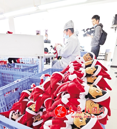 央視記者通過“云直播”的方式,把我市脫貧攻堅、移民搬遷、產(chǎn)業(yè)帶動、就近就業(yè)、鄉(xiāng)村振興等帶有安康特色的發(fā)展模式,向全國推介。在生產(chǎn)線上,新偉泰玩具制品有限公司負責人龍武向央視記者介紹,在冬奧會、冬殘奧會期間,吉祥物官方售價一只在100元人民幣左右。代加工一只,收益2元人民幣。目前接到吉祥物訂單97000只,他們每天能生產(chǎn)7000只。