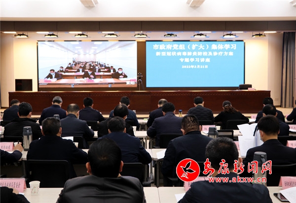 本網(wǎng)訊(通訊員 安政軒)3月21日晚,市政府黨組開展新型冠狀病毒肺炎防控及診療方案專題學習。市長武文罡主持會議并講話,市政府領導班子成員,疫情防控有關工作部門負責同志參加專題學習。各縣(市、區(qū))政府班子成員及部門負責同志以視頻形式參加學習。