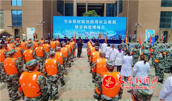 當(dāng)天模擬演練以紫陽(yáng)縣任河流域在主汛期3日內(nèi)降水量超過(guò)200毫米,任河出現(xiàn)超警戒洪水和突發(fā)山洪地質(zhì)災(zāi)害為背景。選定受洪水、山洪及地質(zhì)災(zāi)害威脅嚴(yán)重的毛壩鎮(zhèn)和高灘鎮(zhèn)2個(gè)重點(diǎn)鎮(zhèn)、4個(gè)具有代表性的村(社區(qū))組織應(yīng)急演練,對(duì)監(jiān)測(cè)預(yù)警、會(huì)商研判、巡查監(jiān)測(cè)、應(yīng)急響應(yīng)、現(xiàn)場(chǎng)救護(hù)、強(qiáng)制撤離、迎戰(zhàn)洪水、緊急救援、安置保障等共9個(gè)科目20個(gè)場(chǎng)景進(jìn)行情景化、實(shí)戰(zhàn)化、系統(tǒng)化演習(xí),通過(guò)全流程推演、全要素配置、全鏈條實(shí)操,全面檢視我市防汛體制優(yōu)化調(diào)整運(yùn)行機(jī)制和成效。