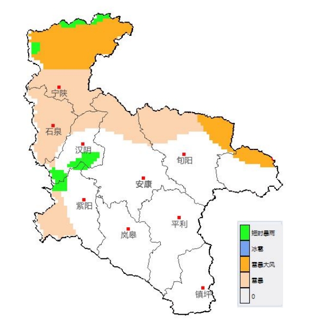 5月25日14 時(shí)-26日08時(shí)安康市災(zāi)害性天氣預(yù)報(bào)落區(qū)圖