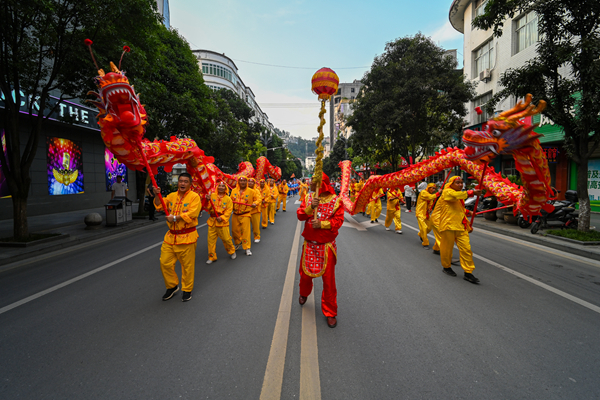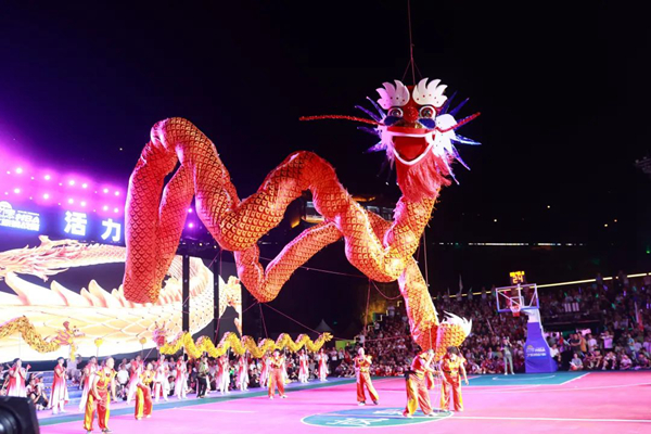 開(kāi)幕式規(guī)模宏大,異常精彩。貴州廣播電視臺(tái)知名節(jié)目主持人、貴州村BA節(jié)目主持人李旭涵、劉子豪兩位重量級(jí)主持人親臨主持,熟練專(zhuān)業(yè)而又激情的引導(dǎo)互動(dòng)為開(kāi)幕式晚會(huì)增添爆棚氛圍。歌手沙寶亮傾情演唱《最初的信仰》《又回首》《暗香》等歌曲,世界散打冠軍、國(guó)家散打隊(duì)主教練許家恒,全國(guó)競(jìng)走冠軍陳珍、全國(guó)青運(yùn)會(huì)冠軍田紫丹的互動(dòng)以及本土節(jié)目《旗開(kāi)得勝》《歡迎你到嵐皋來(lái)》《巴山魔芋情》等將嵐皋豐厚的旅游資源、特色產(chǎn)品、人文風(fēng)情展現(xiàn)得淋漓盡致。無(wú)比酷炫的燈光秀、煙花秀閃耀全場(chǎng),56米巨龍騰空而起,光與影的交織變換構(gòu)成了一幅幅絕妙畫(huà)卷,現(xiàn)場(chǎng)掌聲雷動(dòng),喝彩聲、吶喊聲此起彼伏。