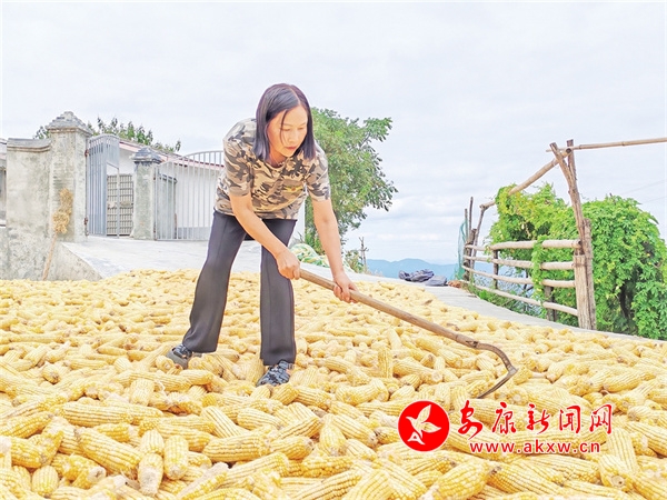 8月29日,在平利縣城關(guān)鎮(zhèn)普濟寺村徐家溝生態(tài)種養(yǎng)業(yè)家庭農(nóng)場,張冬明頂著烈日,正在晾曬玉米棒子。