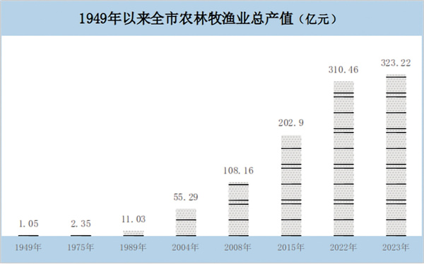 產(chǎn)業(yè)結(jié)構(gòu)日趨優(yōu)化。1952年,全市三次產(chǎn)業(yè)比為83.9︰2.5︰13.6,產(chǎn)業(yè)結(jié)構(gòu)呈“一、三、二”模式,為典型的農(nóng)業(yè)市,隨著工業(yè)經(jīng)濟(jì)和第三產(chǎn)業(yè)的不斷發(fā)展,全市第一產(chǎn)業(yè)比重逐年下降,二、三產(chǎn)業(yè)比重逐年上升,2012年三次產(chǎn)業(yè)比為19.4︰42.7︰37.9,第一產(chǎn)業(yè)占比首次低于20.0%,第二產(chǎn)業(yè)突破40.0%,產(chǎn)業(yè)結(jié)構(gòu)呈“二、三、一”模式;隨著第三產(chǎn)業(yè)不斷壯大,2020年占比45.3%,躍居三產(chǎn)之首,呈“三、二、一”模式,并連續(xù)保持4年,2023年全市三次產(chǎn)業(yè)之比15.0︰37.7︰47.3,以服務(wù)業(yè)為主的產(chǎn)業(yè)結(jié)構(gòu)加速形成。