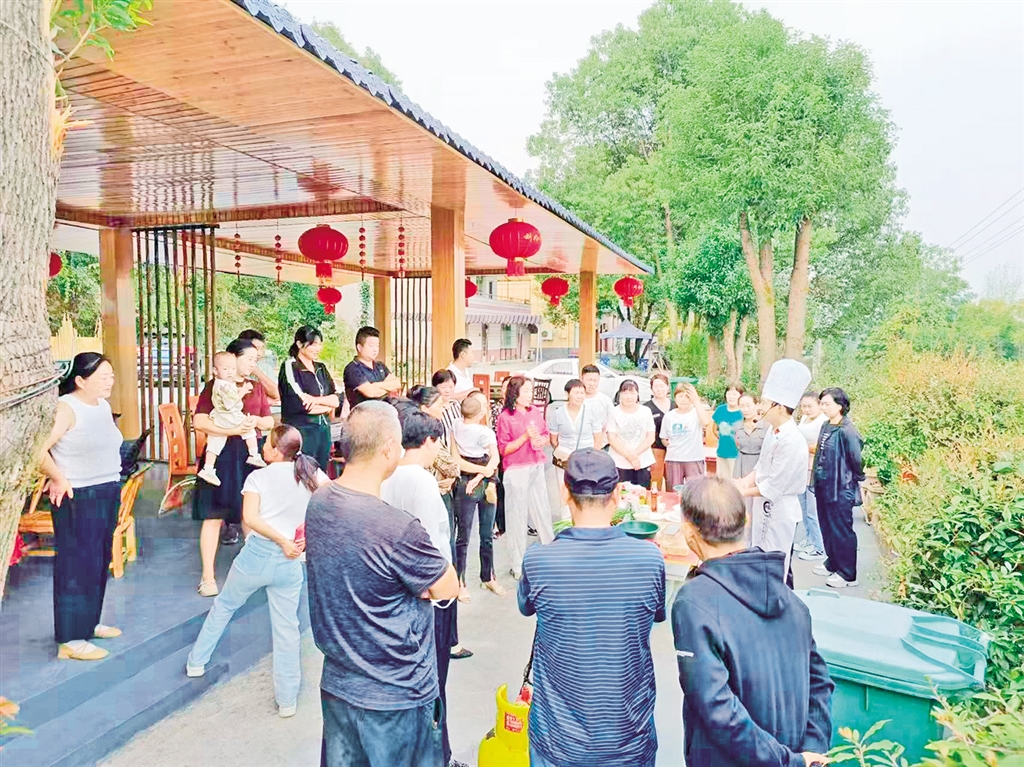 在張樂介紹的間隙,就有幾輛滿載的車輛依次來(lái)到山舍小院,客人的歡聲笑語(yǔ)很快將小院變得熱熱鬧鬧。在這里工作的服務(wù)員鄒玉梅是棗園村村民,得知山舍小院招工后,便來(lái)到這里務(wù)工。“我每天在這里就是洗菜切菜、招呼客人、打掃衛(wèi)生,一個(gè)月也有3000多元的收入。”雖然忙碌,但鄒玉梅對(duì)目前的生活很滿意,她還準(zhǔn)備介紹自己的親戚也來(lái)這里工作。