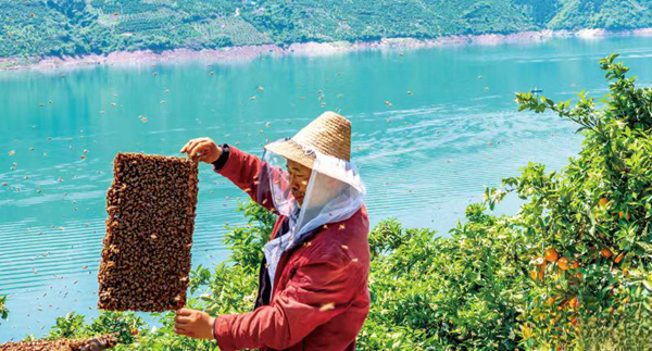流水鎮(zhèn)新莊村柑橘地邊養(yǎng)蜂人