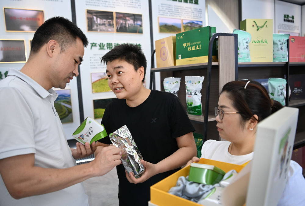 “變化太大了!”距離記者第一次來到蔣家坪,時(shí)光悄然走過5年。新建的游客中心內(nèi),綠茶、絞股藍(lán)等各色茶品琳瑯滿目。村民自家農(nóng)房改造而成的茶舍里,三五游客悠閑品茗。