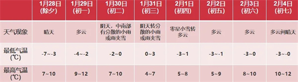 2025年安康中心城區(qū)春節(jié)天氣預(yù)報(bào)