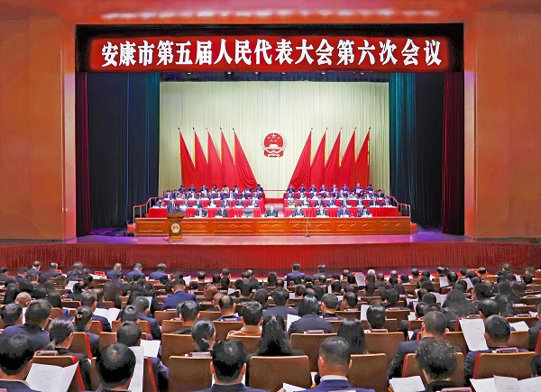△2月9日上午,安康市第五屆人民代表大會(huì)第六次會(huì)議在漢江大劇院開(kāi)幕。記者 艾蓓 攝