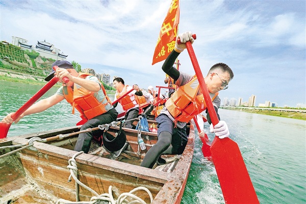 “中國紅 紅西鳳”杯第二十五屆安康漢江龍舟節(jié)主題活動,將于5月31日在龍舟文化園舉行。主題活動結(jié)束后,30支龍舟代表隊(duì)將在漢江一橋至西津漢江大橋江面開展龍舟競賽活動。競賽活動包括800米折返追逐賽、400米直道競速賽和800米直道競速賽,市民可在龍舟文化園和一江兩岸觀賽。圖為5月24日正在進(jìn)行水上訓(xùn)練的安康衛(wèi)健·中醫(yī)醫(yī)院龍舟隊(duì)。(記者 潘潤生 攝)JWV安康新聞網(wǎng)