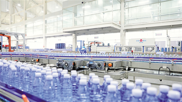走進位于漢濱區(qū)關(guān)廟鎮(zhèn)龍王泉村的安康龍王泉富硒礦泉水有限公司基地,一輛輛貨車排起長龍,有序等待裝貨。全自動生產(chǎn)線上,經(jīng)過吹瓶、灌裝、旋蓋、噴碼、貼標(biāo)等工序,一瓶瓶富硒礦泉水魚貫而出。“目前日發(fā)貨量超3萬件,省外訂單同比增長40%。”該公司辦公室主任李海安指著運往深圳的貨柜說。
