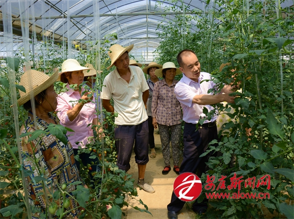 忠誠村黨支部書記劉瑞紅現(xiàn)場給村民講解如何修剪圣女果
