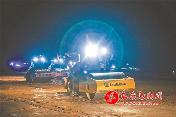 安康新聞網訊(記者 吳單 潘潤生)近200臺翻斗車來回穿梭運送土石方,重達20噸的吊錘反復被大型強夯機從幾十米高空拉起、拋下,發(fā)出聲聲巨響,百米之外仍能感受到夯地的震動感。腳手架上、交通路口,工人們有條不紊地進行著作業(yè)、指揮著交通……夜幕下的機場施工現(xiàn)場一片繁忙。