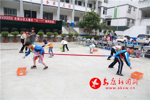 捐贈儀式結(jié)束后,正溝小學師生和市婦幼保健院醫(yī)務(wù)人員開展了聯(lián)誼活動,通過“抓尾巴”、“跳跳袋”、“扭扭樂”、“東西南北跑”等游戲,拉近了師生之間的距離,也讓孩子們體驗了游戲的樂趣和童真。孩子們還一起分享了市婦幼保健院為他們帶來的蛋糕,大家在一片歡聲笑語中度過了一個愉快、難忘的節(jié)日。
