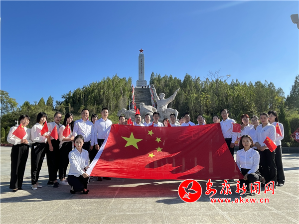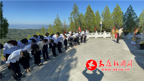 在牛蹄嶺戰(zhàn)役紀念碑前,全體黨員向革命先烈鞠躬默哀、敬獻花籃,向在牛蹄嶺戰(zhàn)役中浴血奮戰(zhàn)、英勇犧牲的先輩們表達哀思和敬意。
