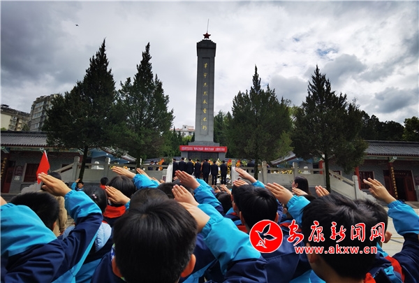 “白云悠悠含悲意,楊柳依依有哀情。”當(dāng)天下午,師生們列隊來到烈士陵園,肅立在雄偉的烈士紀(jì)念碑前緬懷英烈。在莊嚴(yán)肅穆的氛圍中,舉行了少先隊入隊儀式,齊唱《少先隊隊歌》,鄭重宣誓,敬獻(xiàn)花籃。隨后瞻仰了烈士紀(jì)念碑、烈士姓名墻等。還集體參觀了牛蹄嶺戰(zhàn)斗和三線建設(shè)展覽館。