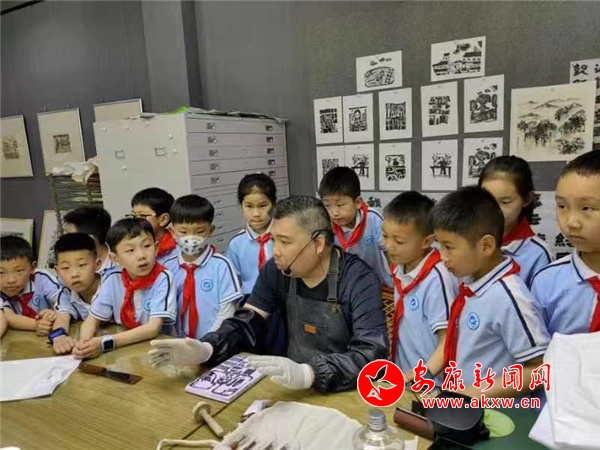 師生們?cè)谌核囸^老師帶領(lǐng)下觀摩了“藝橋飛架童心筑夢(mèng)”蘇陜?cè)ト∪厣賰喊娈?huà)展,一幅幅精品佳作,表現(xiàn)出童心、童趣,弘揚(yáng)著中華優(yōu)秀傳統(tǒng)文化,培育和踐行社會(huì)主義核心價(jià)值觀,傳遞著新時(shí)代少年兒童心中的美好心愿和遠(yuǎn)大夢(mèng)想,讓同學(xué)們心中種下了一顆藝術(shù)的種子。緊接著同學(xué)們來(lái)到版畫(huà)工坊,實(shí)地參觀專(zhuān)業(yè)老師版畫(huà)制作過(guò)程,從專(zhuān)業(yè)老師的制作中,明白了一張版畫(huà)是如何誕生的。