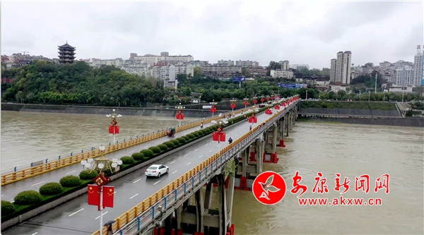 隨著節(jié)日的臨近,安康城區(qū)大街小巷節(jié)日氣氛不斷升溫,新安裝的漢江一橋燈桿上的五星紅旗一字排開迎風招展、鮮艷奪目,莊嚴隆重的氣息撲面而來。站在江南老城堤上俯瞰車水馬龍的街道,美麗的綠化與鮮紅的國旗交相輝映,構建出一幅熱烈和諧的城市景觀圖。