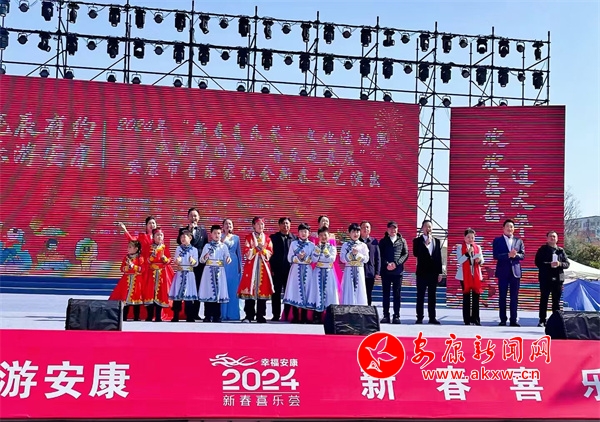 上午10時,張燈結(jié)彩的廣場上,花團錦簇,人聲鼎沸,歌聲四起,熱鬧非凡。舞臺大屏幕上“龍辰有約、樂游安康,歡歡喜喜過大年,我的中國夢——音樂走基層”字眼格外醒目。一首由安康十大民歌手周正凱演唱的《清江戀歌》拉開序幕,讓市民們在悠久綿長動聽的音樂聲中去感受新春佳節(jié)色彩斑斕的文化韻味。安康市音樂家協(xié)會副主席李娜、央視《星光大道》優(yōu)秀歌手李剛及音樂家協(xié)會張輝、卜照飛、李銘、張榮榮、周婷婷、秦維強相繼登臺獻歌,《蘆花》《父親的草原母親的河》《卓瑪》等一首首膾炙人口的動聽歌曲,贏得了現(xiàn)場近千名觀眾的陣陣掌聲。特別是獨具藝術(shù)魅力的小提琴獨奏《我的祖國》、安康二胡藝術(shù)培訓(xùn)中心小朋友的《北京有個金太陽》、配樂朗誦《在春天的懷抱里》、民樂小合奏《揚鞭催馬運糧忙》無不曼妙爾雅,把演出活動推向高潮。