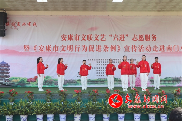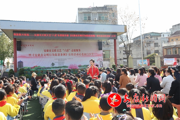 本網(wǎng)訊(見習(xí)記者 張璇)3月20日,由市創(chuàng)文辦、市文聯(lián)主辦的“強國復(fù)興有我”安康市文聯(lián)文藝“六進”志愿服務(wù)暨《安康市文明行為促進條例》宣傳活動在漢濱區(qū)南門小學(xué)舉行。