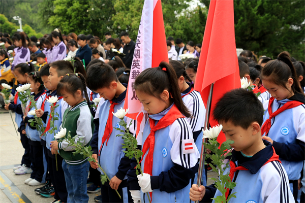 全體師生列隊紀(jì)念碑前,為革命先烈獻花默哀。每一個人的心中都在向革命先烈們曾經(jīng)所經(jīng)歷的風(fēng)霜雪雨、艱苦磨難致敬,為他們復(fù)興中華、赴湯蹈火的崇高精神致敬。