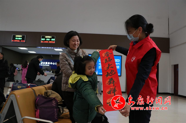 1月14日,春運首日,西安局集團公司安康東站在旬陽站開展“溫情承諾 溫馨出行”主題活動。候車室內(nèi),紅色的窗花光彩奪目,剛?cè)岵奶珮O拳、歡快的歌舞、動情的朗誦、寫春聯(lián)等一系列活動精彩紛呈,不少旅客在展板前拍照打卡,積極上臺表演才藝,處處洋溢著喜慶的氛圍。一些志愿者還為出行旅客送出中國結(jié)、春聯(lián)和福字,幫助旅客搬運行李。今年春運,安康東站將針對秦巴山區(qū)旅客出行需求,組建“太極韻 溫馨行”黨員服務隊,做好旅客服務、疑難解答等工作,進一步提升服務品質(zhì),溫暖旅客出行路。(通訊員 孟繁璐)
