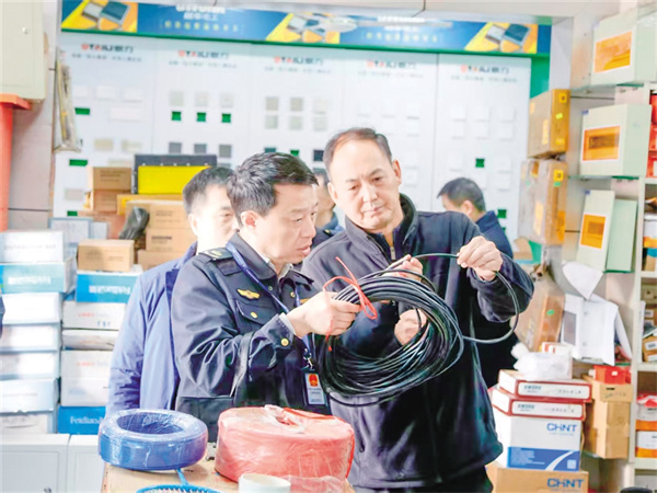 執(zhí)法人員對(duì)電線電纜企業(yè)進(jìn)行檢查