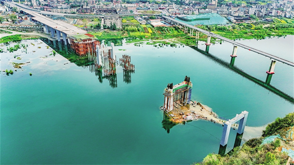 本網(wǎng)訊(通訊員 趙華斌)連日來,經(jīng)過施工人員連夜奮戰(zhàn)和不懈努力,安康市新關(guān)廟漢江大橋建設(shè)項(xiàng)目第14號、15號橋墩終于完成了下部澆筑和對左右幅第十板主塔鋼筋進(jìn)……