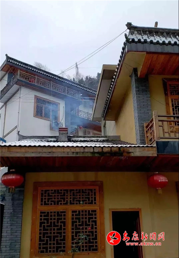 紅屋檐、紅格窗、紅木門、紅楹聯(lián)、紅地毯,還有那懸掛在屋頂上隨風(fēng)舞動(dòng)的紅燈籠,在瑟瑟寒風(fēng)和茫茫白雪中,才顯其妖嬈展姿。這里,是紅與白色澤、熱與冷色溫的匯聚。紅,是一枝梅,是數(shù)盞燈,是萬家火,是山里人熱騰騰好日子的主色調(diào)……