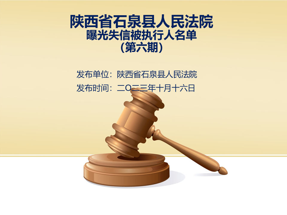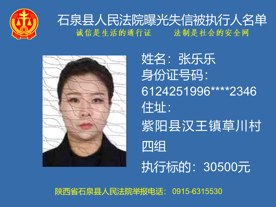 為了進(jìn)一步加大執(zhí)行力度,保障勝訴當(dāng)事人的合法權(quán)益,推進(jìn)社會(huì)誠(chéng)信體系建設(shè),依照《中華人民共和國(guó)民事訴訟法》、《最高人民法院關(guān)于公布失信被執(zhí)行人名單信息的若干規(guī)定》等法律、司法解釋的有關(guān)規(guī)定,現(xiàn)對(duì)一批已進(jìn)入執(zhí)行程序,且尚未全部履行義務(wù)的被執(zhí)行人進(jìn)行媒體曝光,歡迎廣大群眾支持石泉縣人民法院的工作,向我院提供被執(zhí)行人的財(cái)產(chǎn)線索,使生效法律文書(shū)能夠得到切實(shí)執(zhí)行,讓人民群眾切實(shí)感受到公平正義就在身邊。