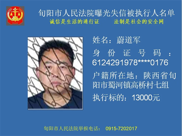 曝光失信 | 旬陽(yáng)法院發(fā)布2024年第一期失信被執(zhí)行人名單