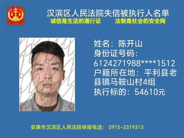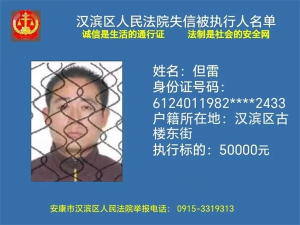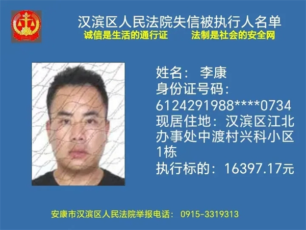 曝光失信 | 漢濱區(qū)人民法院失信被執(zhí)行人曝光名單(2024年第1期)
