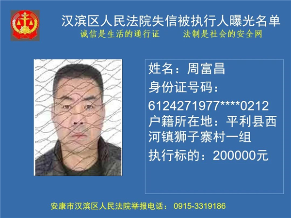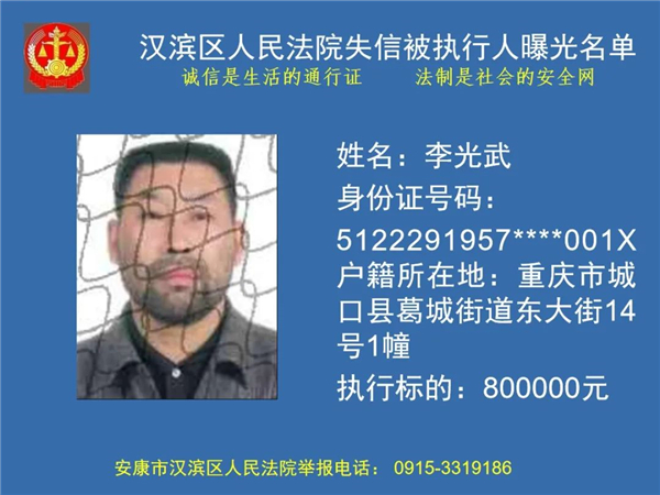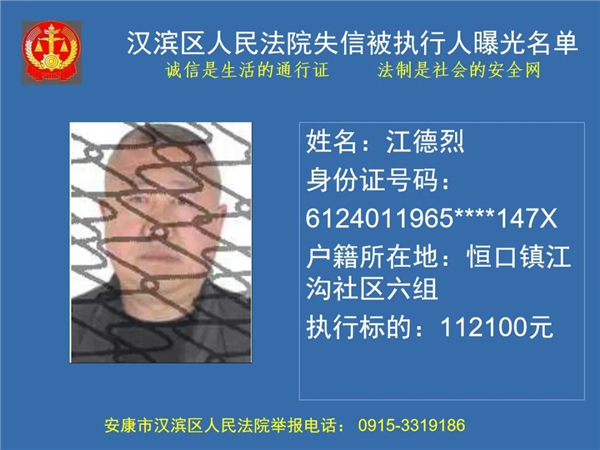 曝光失信 | 安康市漢濱區(qū)人民法院失信被執(zhí)行人曝光名單(2022年第1期)